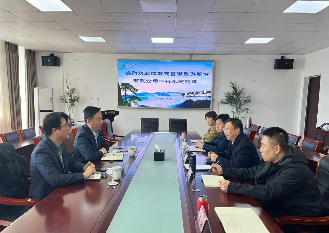 4月2日,江苏天目湖旅游股份有限公司总裁助理兼人力资源部总监何建一行来金沙集团1862cc交流座谈。金沙集团1862cc党委书记、院长金声琅,副院长王式玉及部分教研室主任参加了座谈会。