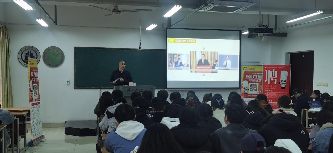 为深入贯彻党中央、国务院关于高校毕业生就业工作决策部署,全面落实教育部2025届全国普通高校毕业生就业创业促进行动的工作要求,金沙集团1862cc抢抓春招关键期,于3月29日在文思楼71001教室,成功举办2025届毕业生春季就业新华教育集团专场见面会。此次宣讲活动由金沙集团1862cc主办,校级立职成才辅导员工作室、校级样板支部(烹饪党支部)承办,22、23、24级烹饪与营养教育专业共计6个班学生参加。