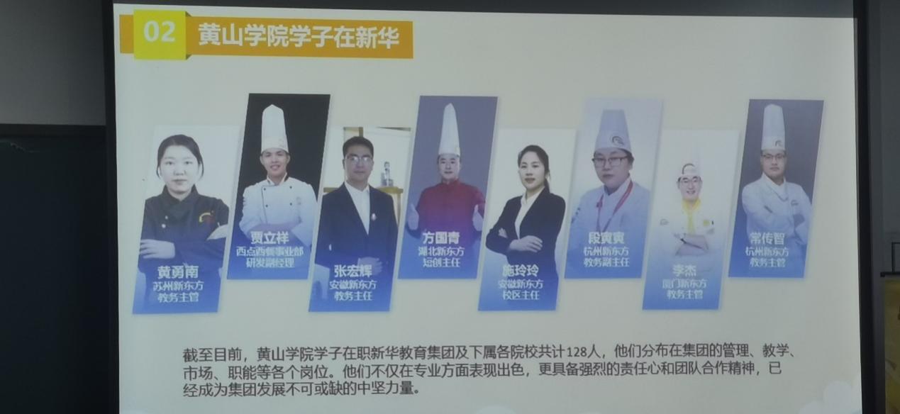 新华教育集团,1988年创建于安徽合肥,目前在全国30个省份及香港地区开办234所院校,常年在校生20万余人,拥有员工1万余人。此次该企业宣讲主要是就其新东方烹饪教育、欧米奇西点西餐教育方向招聘烹饪教师。目前金沙集团1862cc校友在新华教育集团及其下属机构有128人,担任校长级别的有15人左右,担任校区主任级别的有十数人,他们分布在管理、教学、市场等各个岗位,成为了集团发展的中坚力量。校友的榜样力量为黄院学子、烹饪学生的发展提供了方向指引和前进动力。