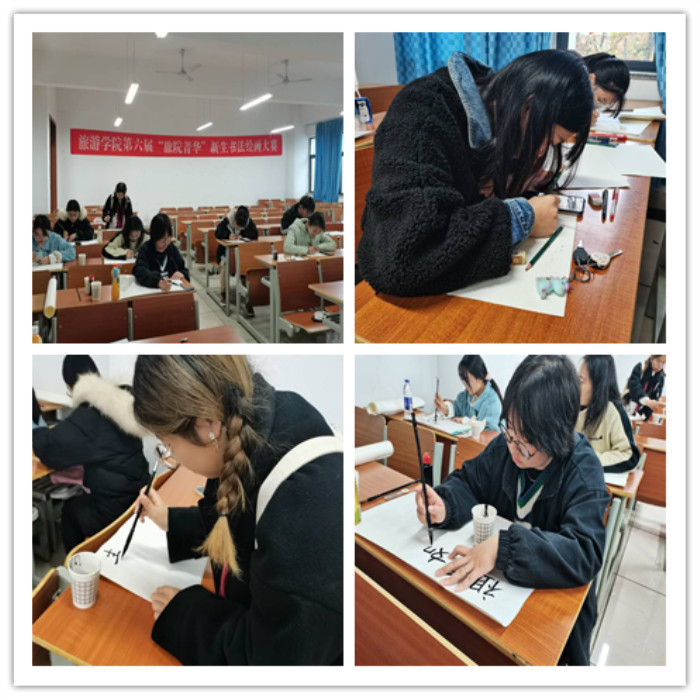 12月9日下午,金沙集团1862cc在率水校区逸夫综合楼5104教室举办第六届“旅院菁华”新生书法绘画大赛。