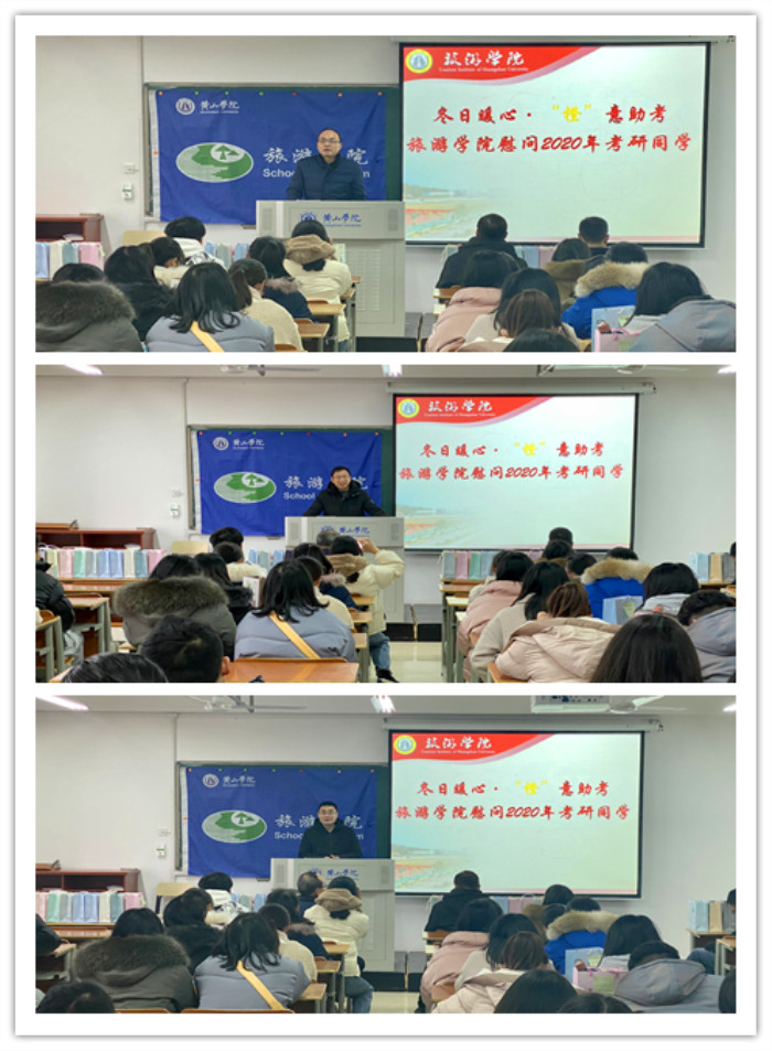 金声琅结合自身考研经历向同学们提出了冲刺阶段的备考建议,围绕信念、方法和心态三个方面,提醒同学们在有限时间内取长补短,力争取得满意的成绩。陶卫平给同学们送上亲切的问候,勉励同学们在备考的最后冲刺阶段端正心态,坚定信心,发扬艰苦奋斗的精神,合理安排饮食起居,为考研之路画上圆满的句号。