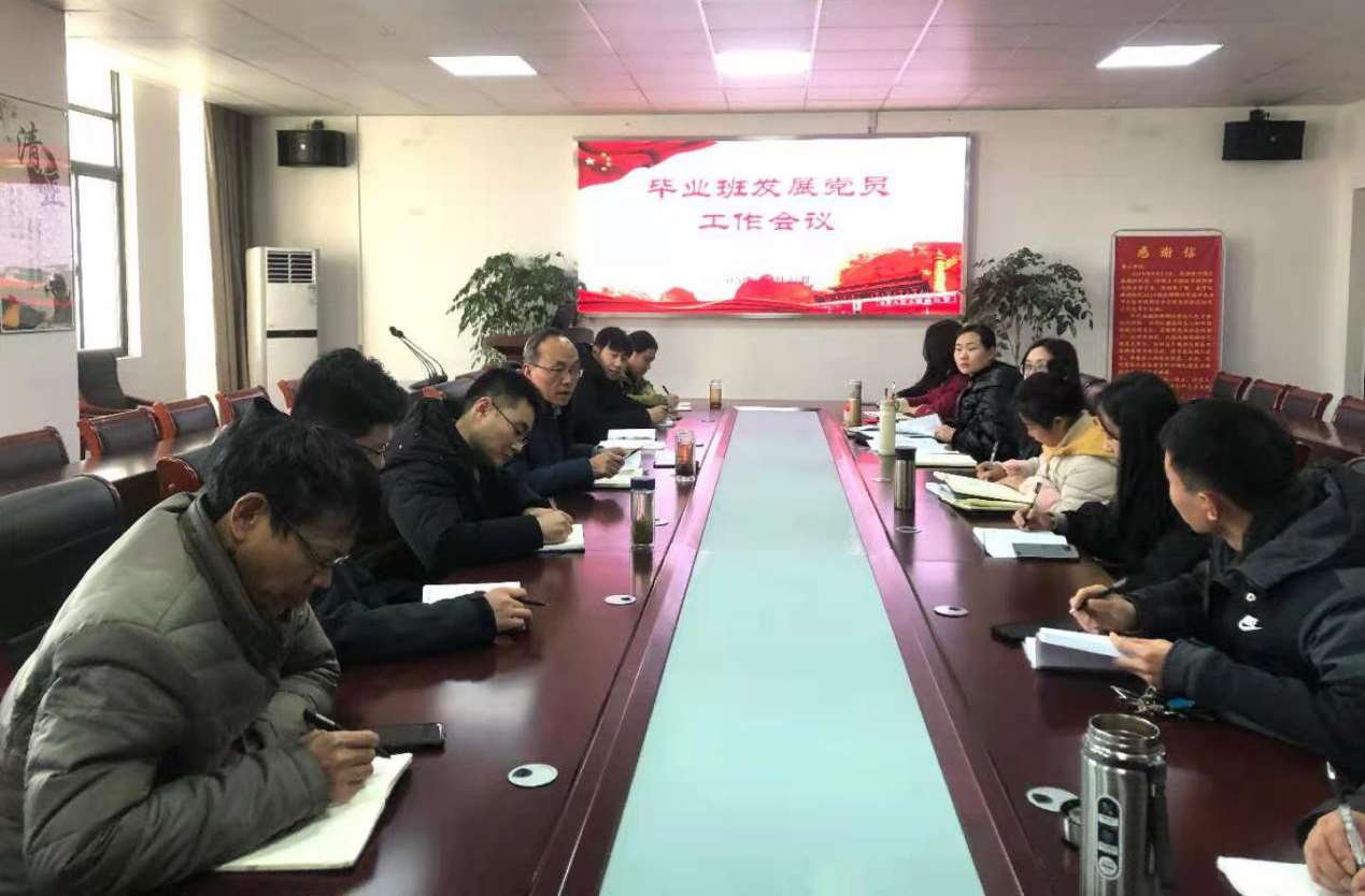 12月21日下午,金沙集团1862cc在文思楼六楼会议室召开会议,布置毕业班发展党员工作。金沙集团1862cc党委书记陶卫平、副院长孙克奎、各党支部书记、毕业班辅导员和各实习片区负责教师参加会议。会议由陶卫平主持。