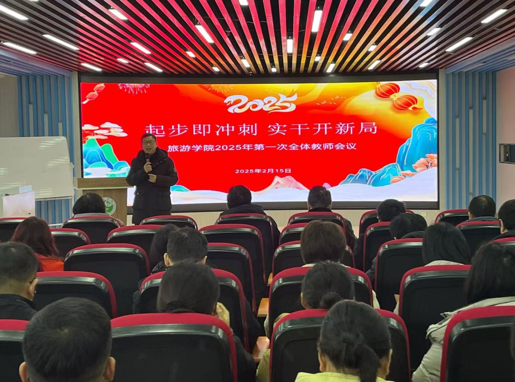 会上,金声琅领学了2025年全国教育工作会议精神、2025年全省教育工作会议精神,并传达了二十届中央纪委四次全会、省纪委十一届五次全会精神和全省学生安全工作视频会议精神。他从党建品牌建设取得的荣誉、省“双特色”建设项目的入选、“十四五”规划教材的获批、世界名山国际学术研讨会的举办、省大学生食品设计创新大赛的组织选拔,以及完成联合国世界旅游组织教育质量认证等方面,对金沙集团1862cc2024年工作开展情况进行了回顾和总结;通报了寒假期间金沙集团1862cc在省级“质量工程”项目和国家级科研项目申报等方面开展的工作,并对新学期工作进行了部署。金声琅强调,要用习近平新时代中国特色社会主义思想铸魂育人,凝心聚力,把为党育人、为国育才的初心和使命落到实处,以饱满的工作热情、扎实的工作作风,助力学院发展再上新台阶。