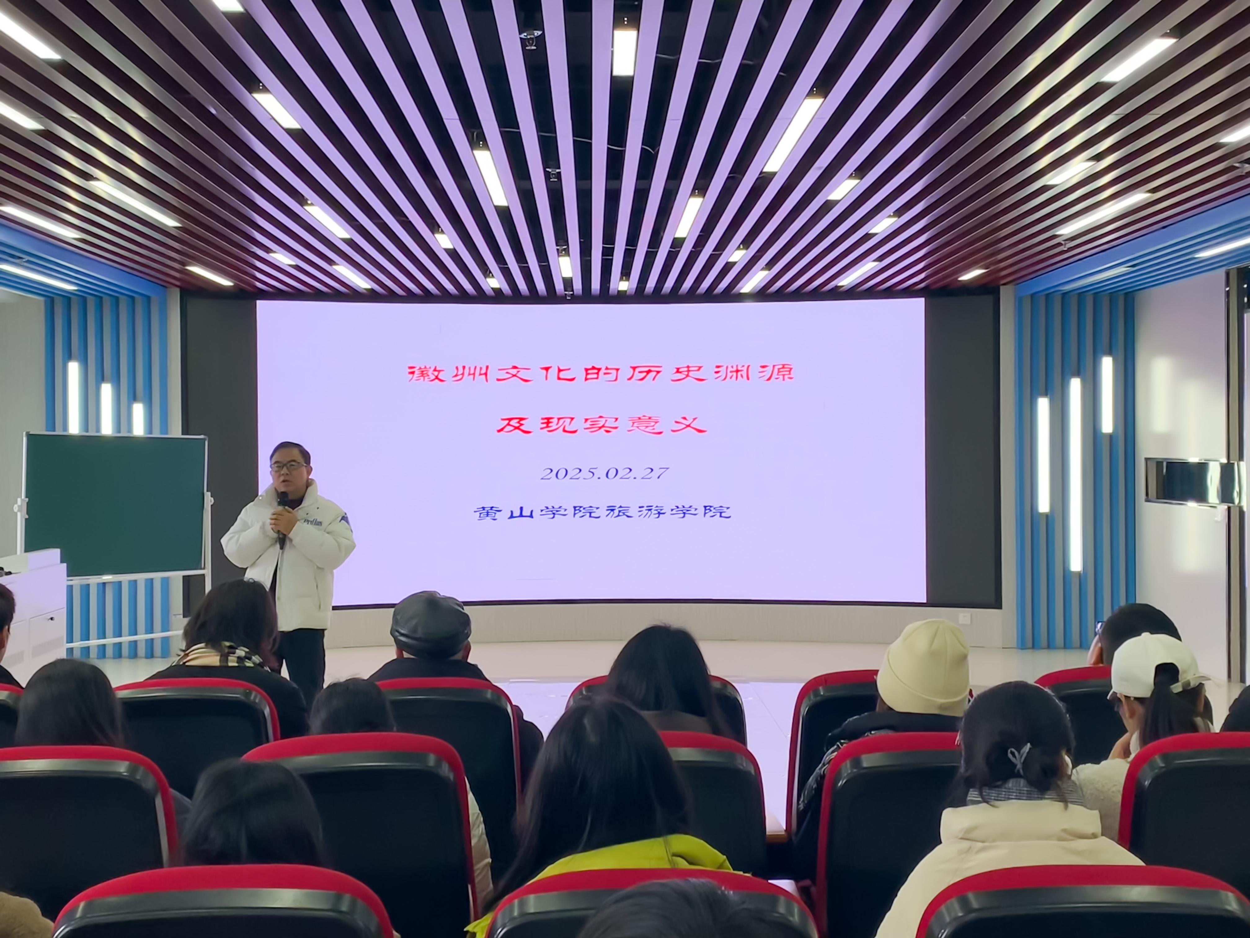 2月27日,金沙集团1862cc在文思楼五楼报告厅举办第二十七期“旅途问道”系列讲座。黄山市研学旅行协会秘书长、市导游员协会副会长李月明应邀作了题为“徽州文化的历史溯源及现实意义”专题讲座。金沙集团1862cc专业课程教师代表及旅游管理、酒店管理专业相关年级学生参加讲座。讲座由金沙集团1862cc副院长张俊香主持。